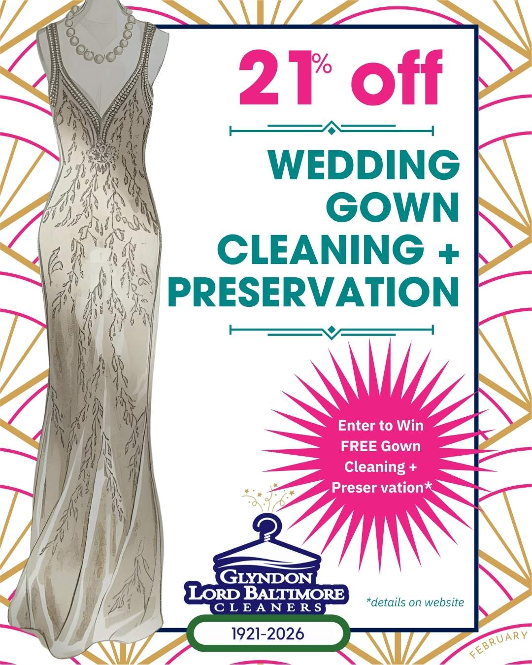 Experience trusted care at Glyndon Lord Baltimore Cleaners, where your gown benefits from skilled craftsmanship and personalized attention.
